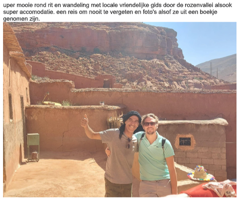 super mooie rond rit en wandeling met locale vriendelijke gids door de rozenvallei alsook super accommodatie. een reis om nooit te vergeten en foto's alsof ze uit een boekje genomen zijn.